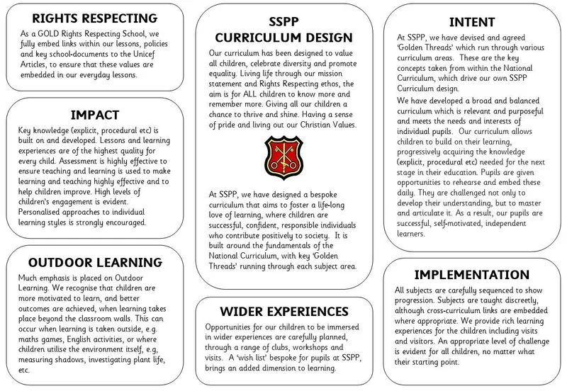 At SS Peter and Paul's Catholic Primary School, our curriculum builds on the knowledge, understanding and skills of all children, whatever their starting points, as they progress through each Key Stage. The curriculum incorporates the statutory requirements of the National Curriculum and other experiences and opportunities which best meet the learning and developmental needs of the pupils in our school.