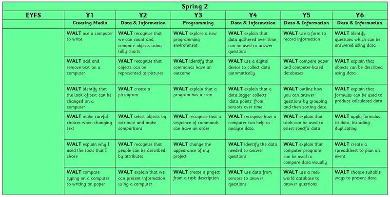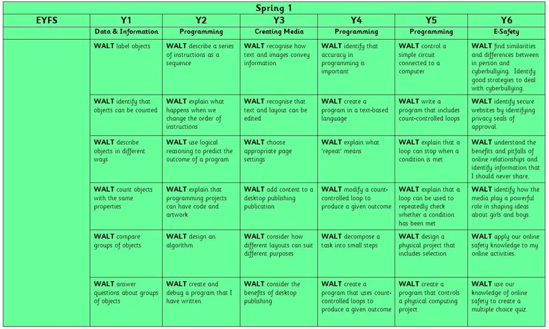 Computing Golden Threads: Networks; Creating Media; Programming; Data and Information; E-Safety