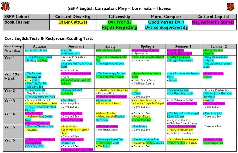 We have also tried to highlight the core themes seen throughout key texts used to deliver the English Curriculum. These are built around the type of pupil SSPP wants to help grow and develop during their time with us. It considers our cohort's characteristics and is supplemented with the books children choose from our 'Recommended Reads'.