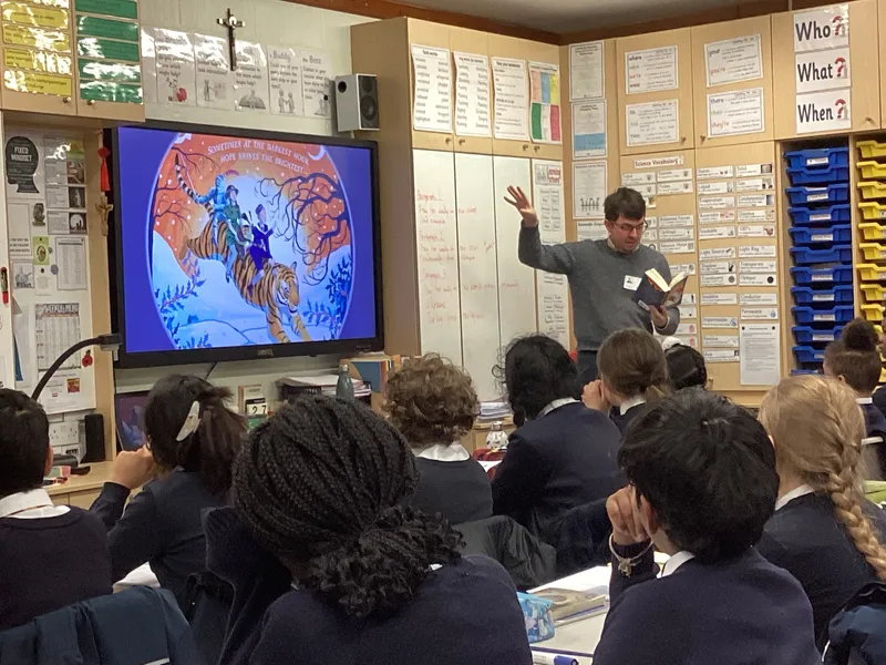 At SSPP, we celebrate with a week-long set of events and lessons close to World Book Day. These are usually themed (2020 - Bedtime Stories; 2022 - Wild About Reading; 2023 - Reading Is Out Of This World). We often work from a school-wide text at this point, which mirrors our activities from World Poetry Day. Despite the substantial cost to the school, we make every effort to secure an author visit (and these are sometimes at multiple points of the year). The calibre of author is high at SSPP, tailoring who we choose to ensure that we feel they will entertain and more importantly enthuse our children. In recent years we have had visits from Anthony Lishak, Brian Moses, Jennifer Bell, Maz Evans and Ross Montgomery. The workshops which take place during these visits are a real highlight, allowing children to step into the world of the professional author.