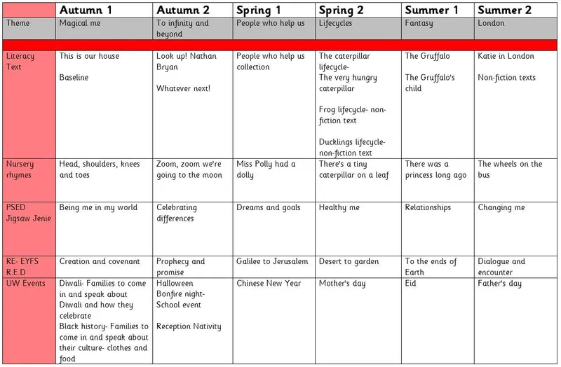 The full curriculum offer can be seen below.