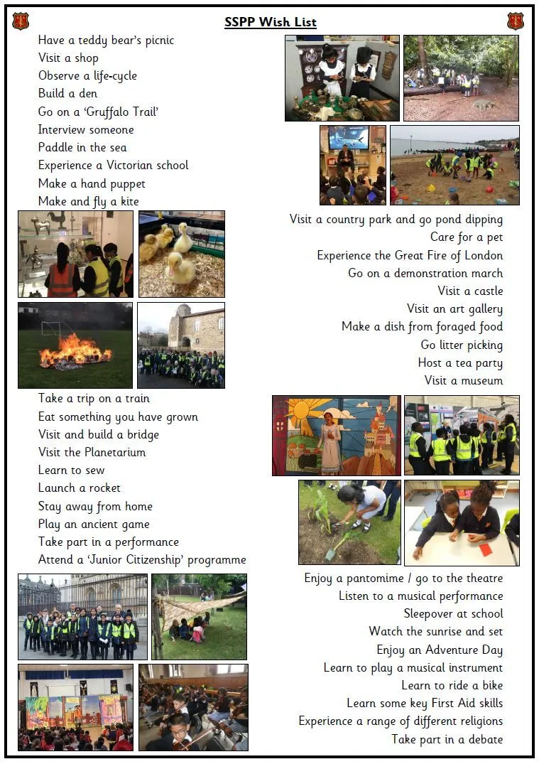 We try to ensure that pupils who attend will, over time, be able to tick off everything on our SSPP 'Wish List'.