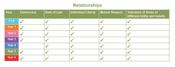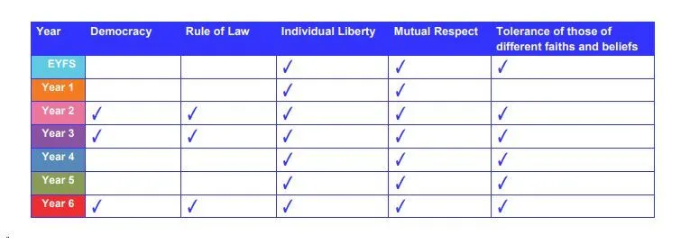 To link in with their topic work, each year group will also focus in more detail on an aspect of British Values.