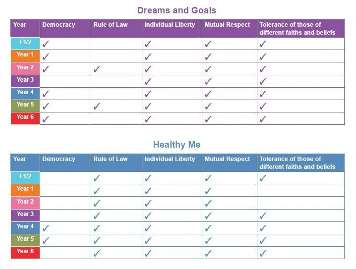 The key learning behind British Values is embedded throughout our curriculum. Designated time is also assigned within the year to complete lessons focussed on each of the key areas.