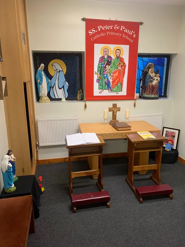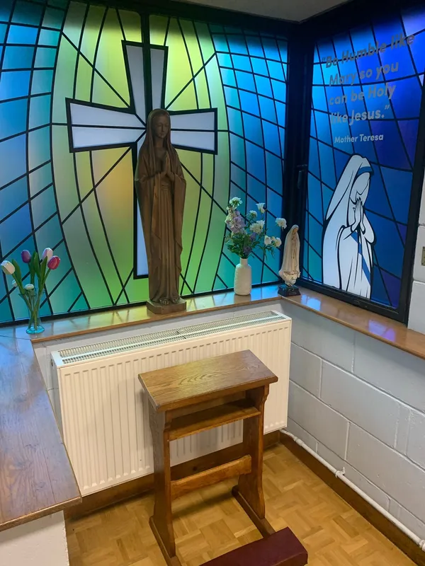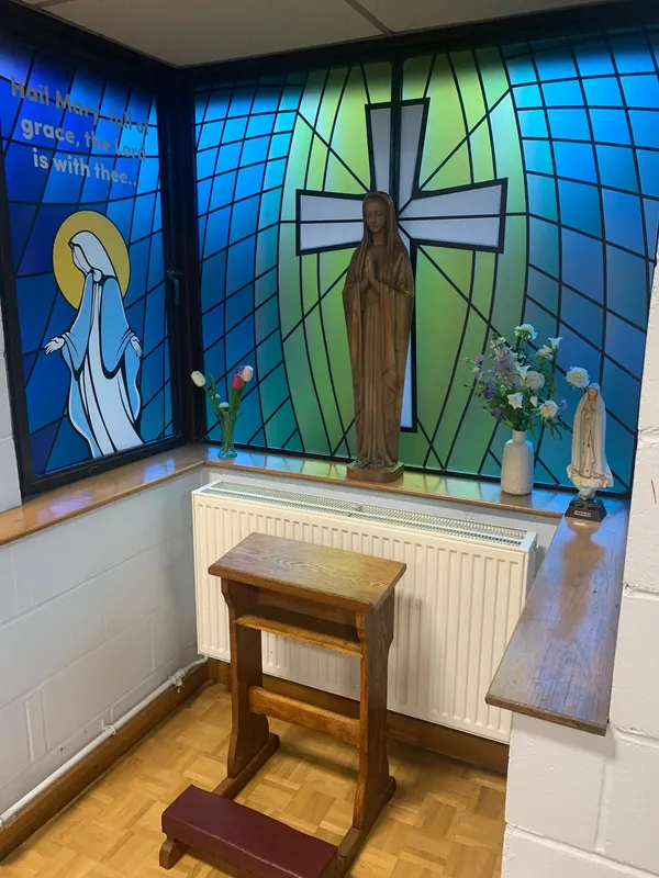 There are many areas within our school which are assigned as spaces for prayer and reflection. These include a dedicated shrine to Our Lady within our hall; a prayer room which is open to pupils all day where they can write petitions in our school prayer book or add prayer leaves to our tree, and an outside space within our Learning Resource Centre. The prayer room has been made available to parents at certain times when it is not being used by children.